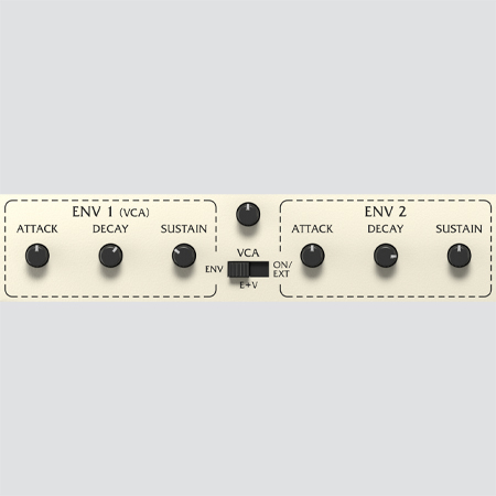 Along with all the controls at your fingertips the 2-XM also includes a total of four envelope generators to help further craft your sound and introduce subtle nuance or percussiveness with the included Attack, Decay and Sustain controls. In addition, the VCA switch allows you to toggle between envelope control or VCA which overrides ENV 1. You can even plug in an external VCA control to really dial it in.