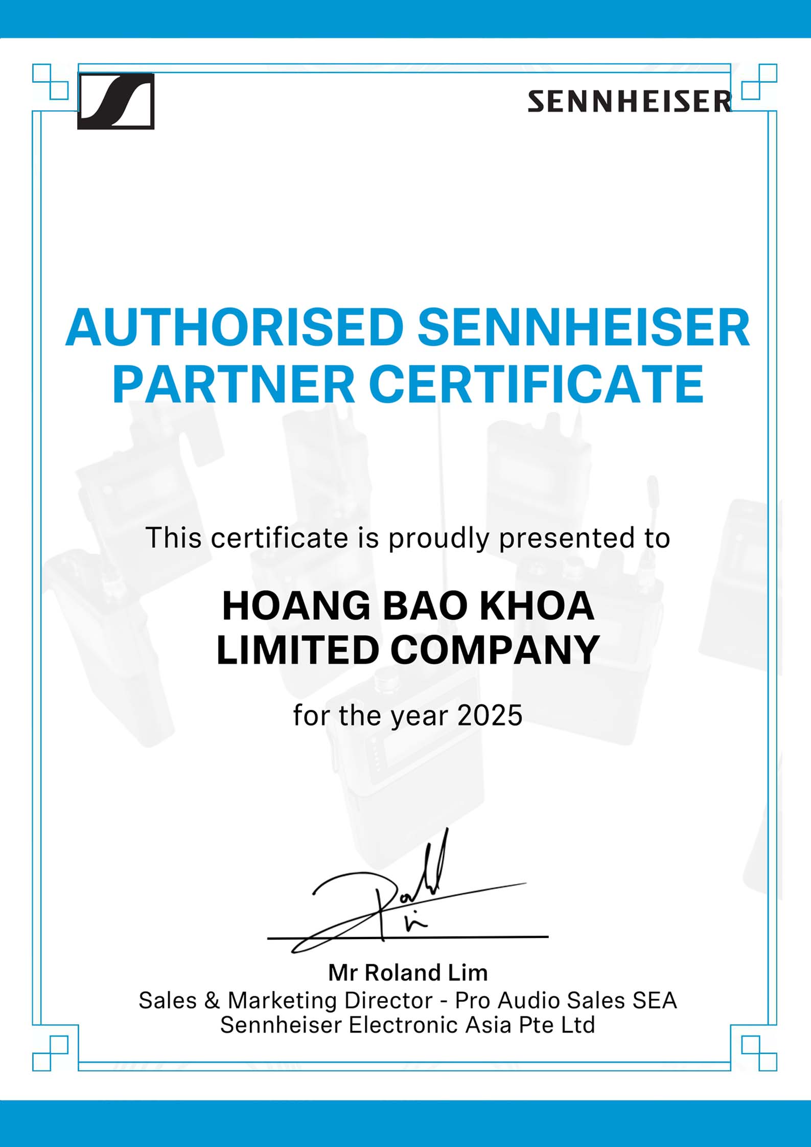 Giấy chứng nhận Hoàng Bảo Khoa - nhà phân phối chính thức Sennheiser